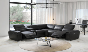 Sleek, bold, and built for comfort, the Tumbler Modern Leather Reclining Sectional redefines modern luxury. Expertly upholstered in premium Italian leather or bonded leather, this spacious L-shaped sectional offers generous seating paired with built-in technology designed to elevate your lounging experience.