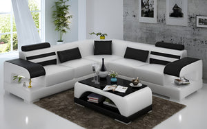 Eleese Modern Leather Sectional with LED Light