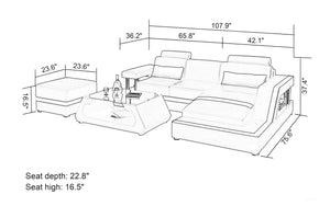 Fits perfectly in our house and put blankets in the storage. It's a smaller couch for sure, the cushion depth is pretty short. The hight is good and was so easy to assemble. The leather feels like good quality although we did have a few strings hanging out in places. I gave it 5 stars because it was exactly what we needed for our front room to make it more open.