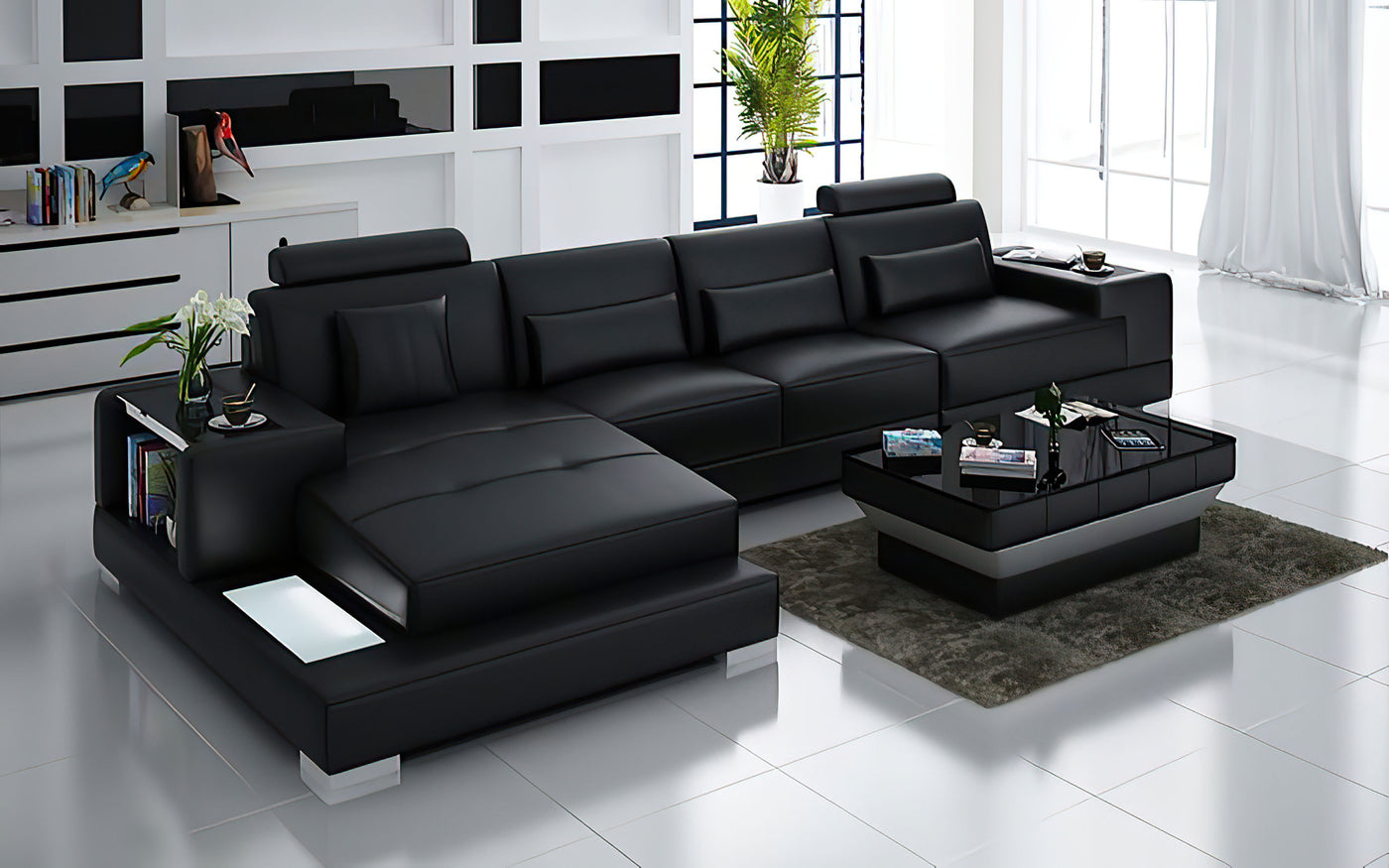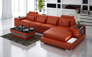 Giana Small Modern Leather Sectional with LED Light