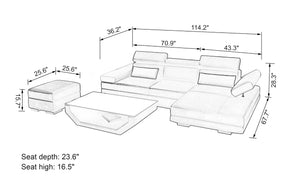 The Merdell Mini Modern Leather Sectional with Chaise is a compact and stylish option for any living space. Handmade with genuine Italian or bonded leather in your preferred color from a selection of 10 distinct colors, this sectional features adjustable top headrests and armrests for tailored support. A chaise is included to invite you to relax and stretch your legs. This sectional also has an additional bed function for extra sleeping space. To complete the look of your home, we recommend adding the armless chair and coffee table with cup holders and USB ports.