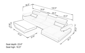 The sectional is small enough to fit in well with my small living room. It is completely made of faux leather and exactly pictured. It is decent for a large family use, so that is why I decided to purchase it. Unfortunately, I received a defective product, but the seller was willing to replace product. Instead, I requested for a full refund. Seller returned my full refund and also generously cancel return shipment. The refund and cancellation process took me a month.
