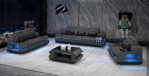The Celsius Modern Leather Sofa Set blends contemporary luxury with innovative function, offering the perfect balance of comfort, style, and smart design. Wrapped in smooth Italian leather or bonded leather, this statement piece features a sculptural two-tone silhouette, sharp armrests, and a futuristic storage and design.