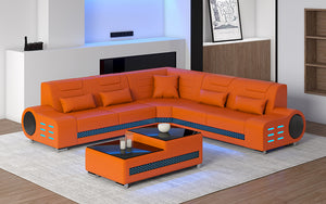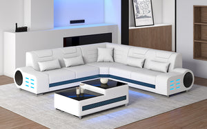 Elliot Small Modern Leather Sectional with LED Accent Panels