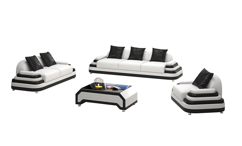 The Lillian Modern Leather Sofa Set blends contemporary luxury with innovative function, offering the perfect balance of comfort, style, and smart design. Wrapped in smooth Italian leather or bonded leather, this statement piece features a sculptural two-tone silhouette, gently curved armrests, and dynamic tiered side platforms that double as display or resting spaces.