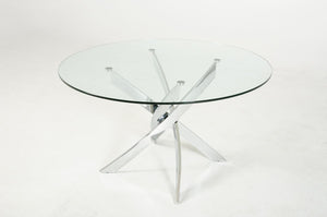 This modern dining table is a simple and sleek addition to your dining space. With the glass top, messes are easily cleanable and gives a hint of sophistication to your dining room. The round table is perfect for intimate gatherings with family and friends. With the overall neutral color, this dining table can easily be dressed up or down.