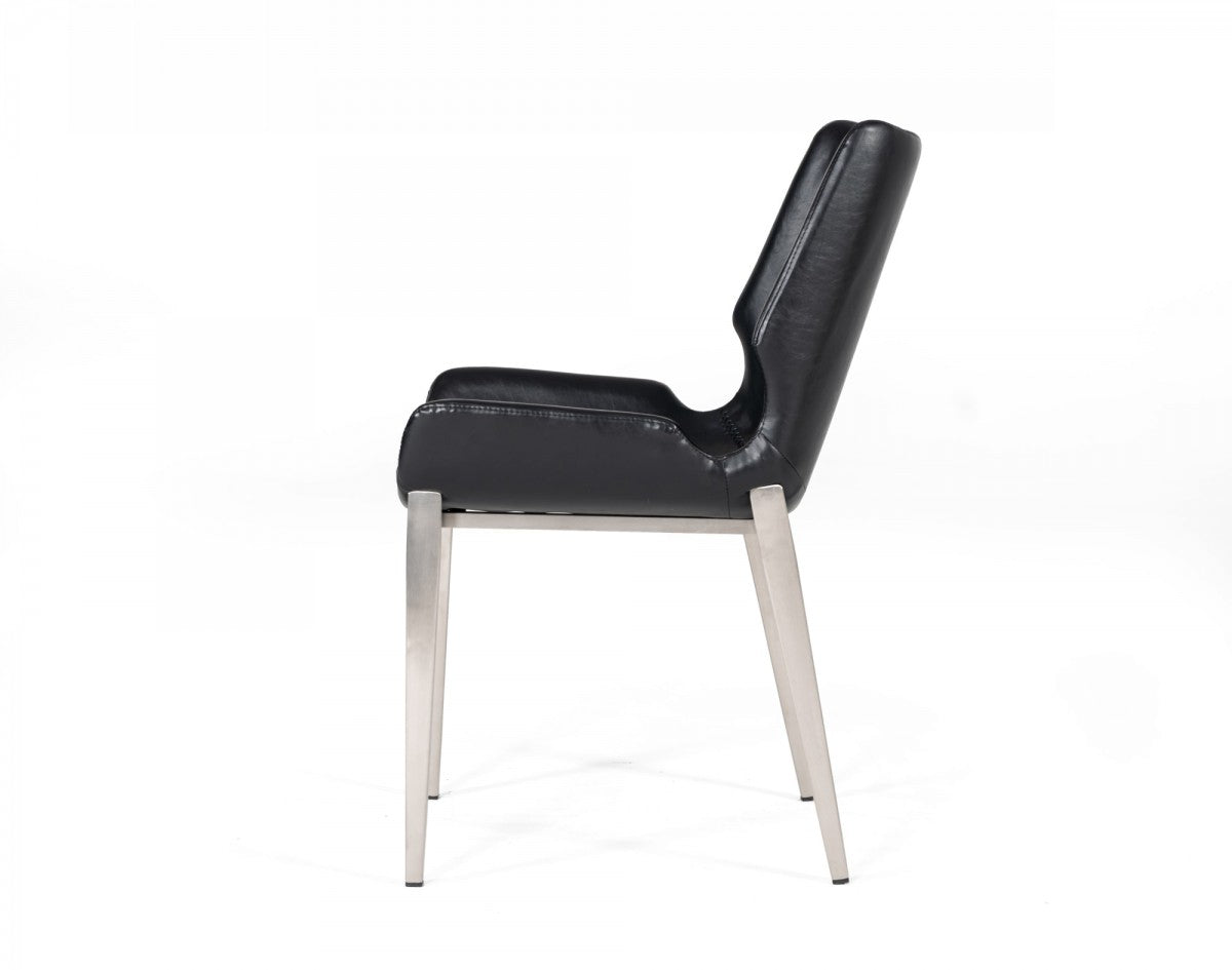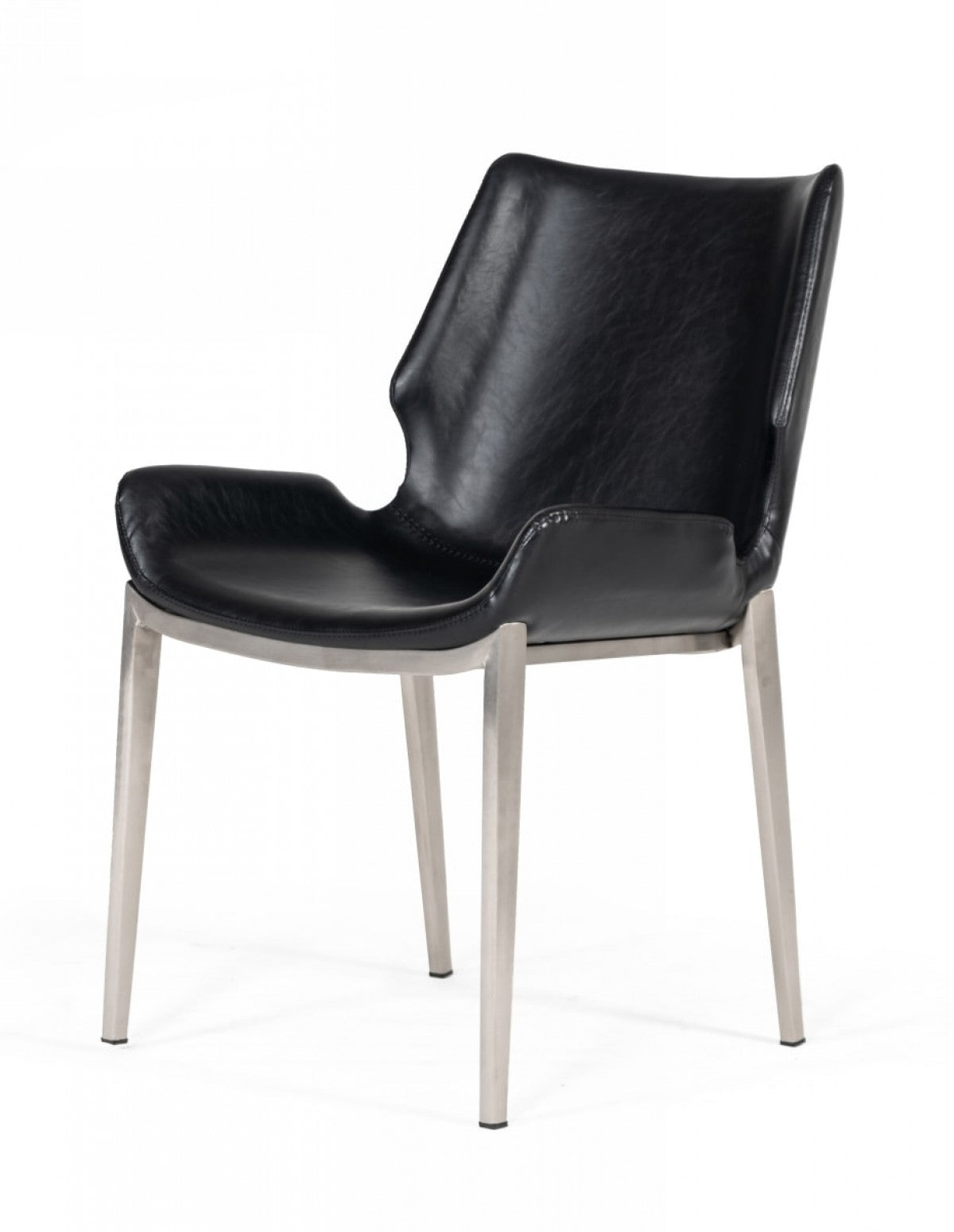 These modern dining chairs are perfect to accompany your current dining table or newly purchased one. The clean sleek design makes for a neutral chair in any space. Leather adds a hint of sophistication and chic style to your dining area. This set of dining chairs could easily work as accent chairs in a living room. With the versatility of these chairs, you will never run out of room to sit.