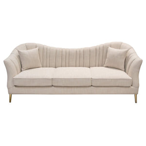 This smart sofa is absolutely beautiful, so elegant and sophisticated. It makes your space look very classy very well-made love the nice large size and to top it off the matching coffee table sets it off very nicely!!