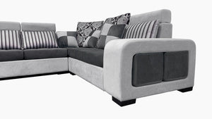 The dark grey and light grey creates an interesting color combination fit for neutral color lovers. Dark and light greycreate a grounded, cool colored theme in your living space. The dark grey cushions and light grey pillows give your living room an inviting and relaxed feel. Elevate your space with this unique version of our Selena sectional today!