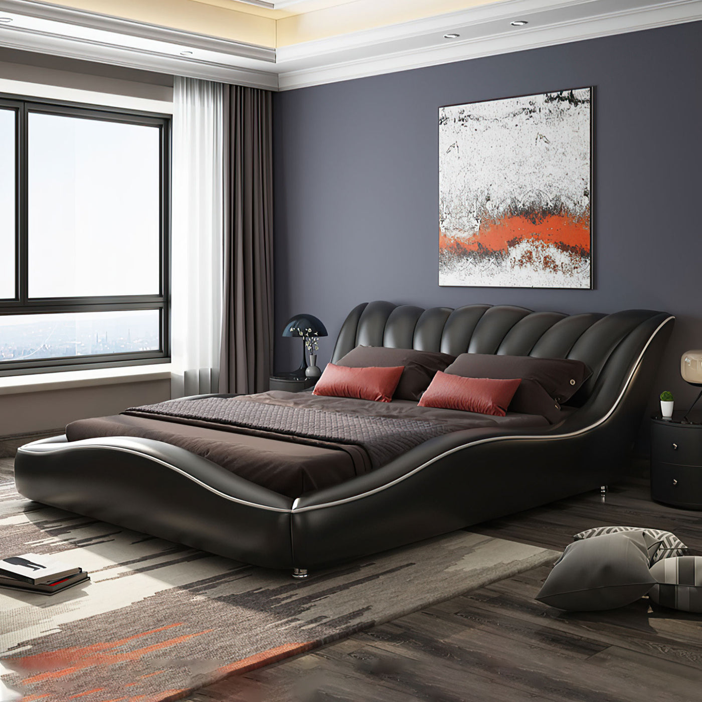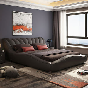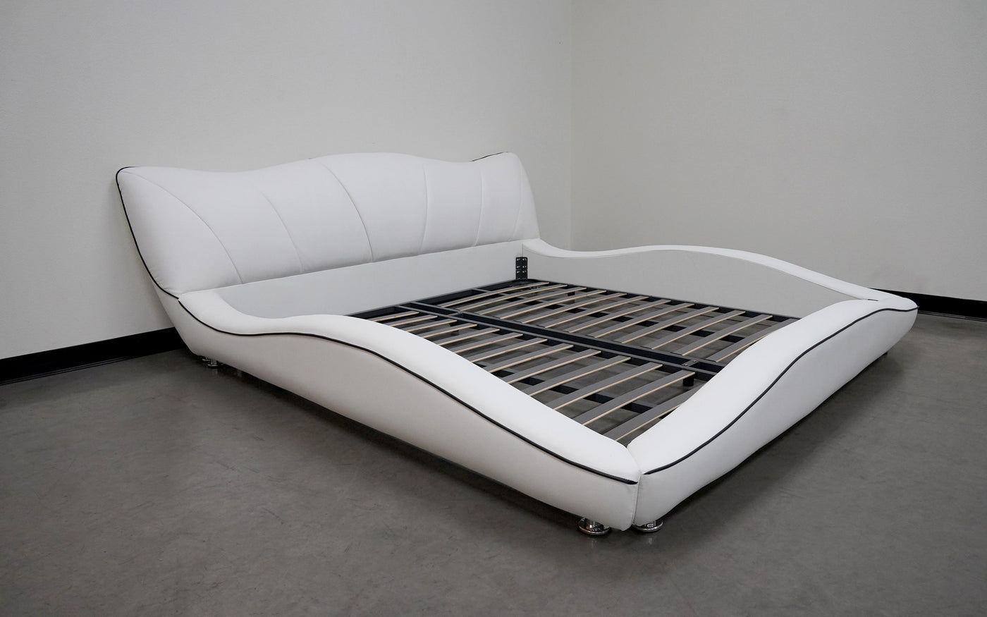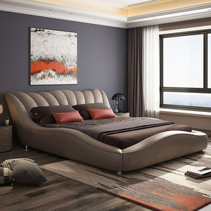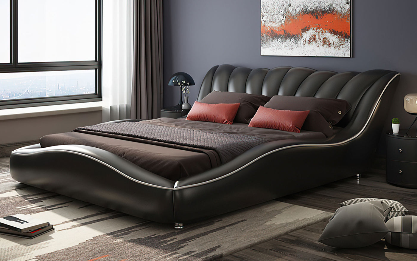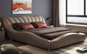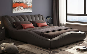 Get a rejuvenating night's sleep with the premium quality of this curved shape design! The use of simple and plain construction will give a spacious look to your room. It features both discreet elegance and fine craftsmanship. Its rounded edges give the frame a softer look. The curved shape headrest can give you maximum comfort. This futuristic bed is available in a wide variety of colors, sizes, and materials. You can also customize it if you want!