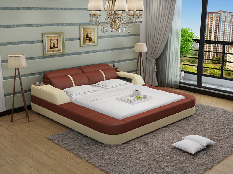 Denya Modern Leather Bed With Storage