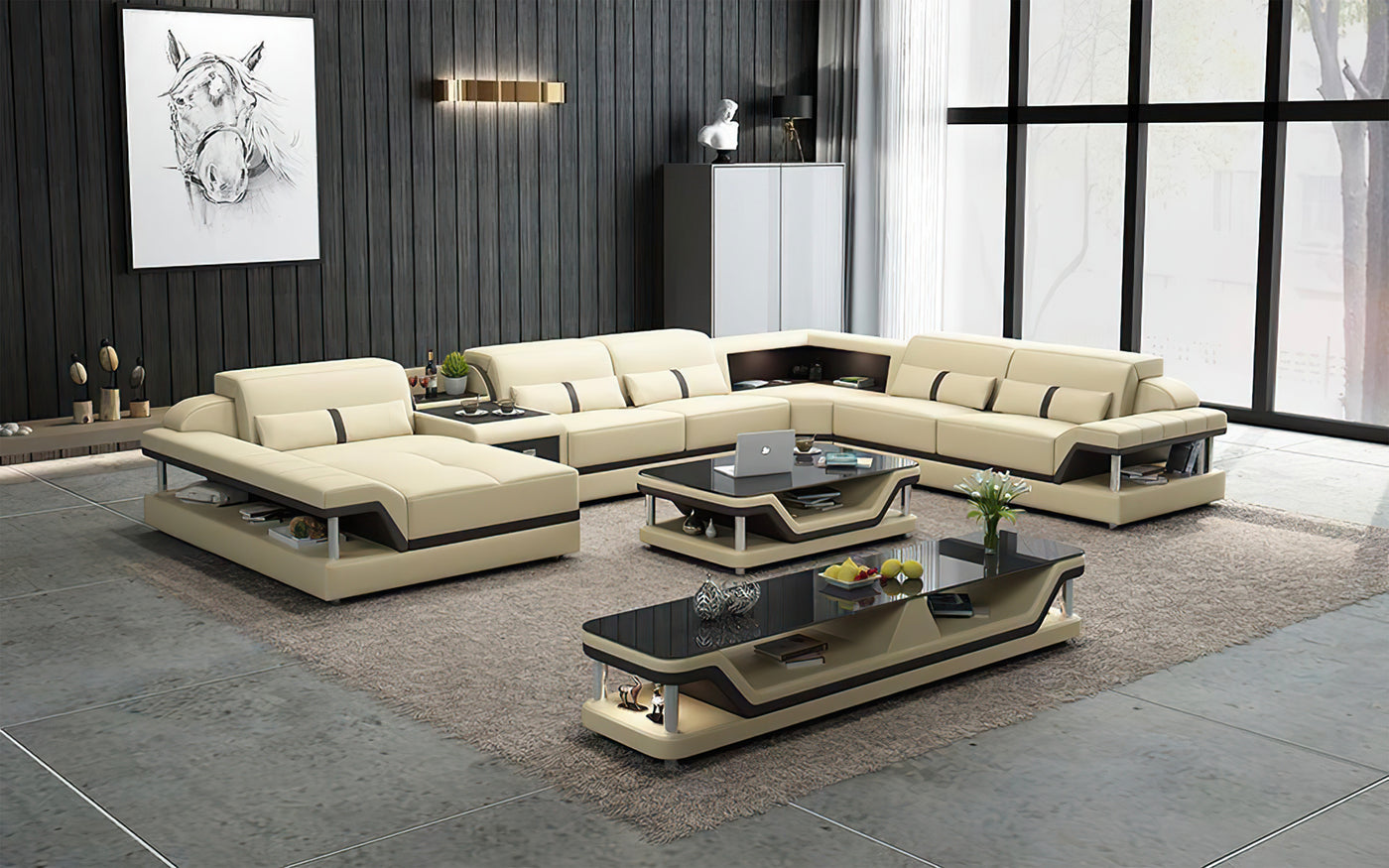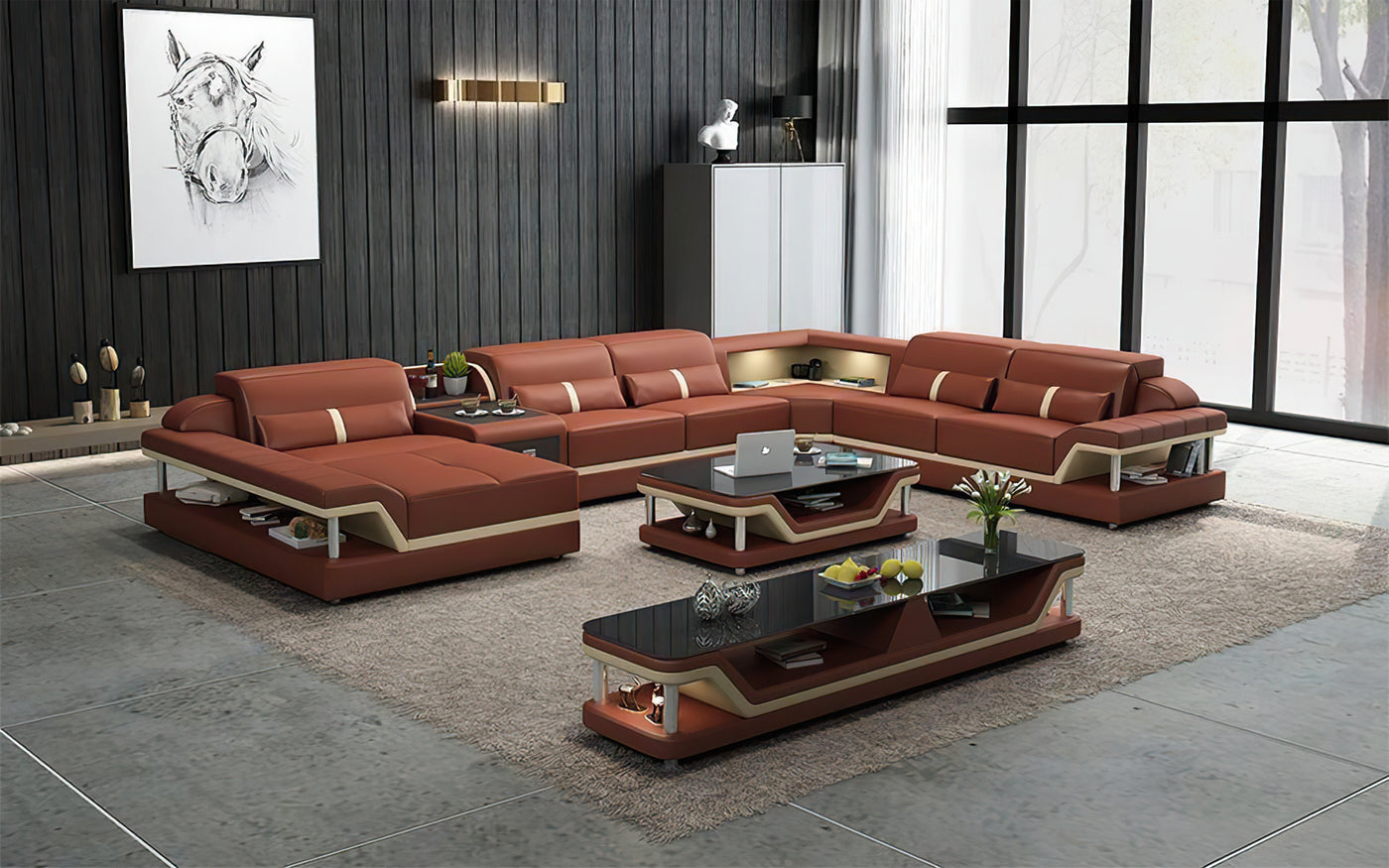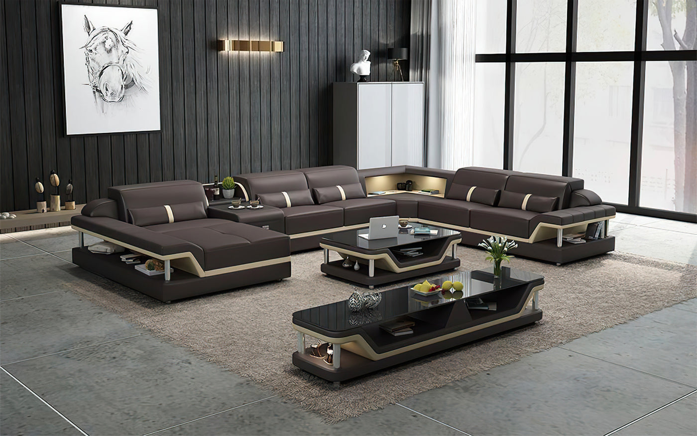 Upgrade your living space with our customizable modern sectional sofas. With a variety of styles, colors, and sizes to choose from, you can create a sofa that's uniquely yours. Add-on features such as LED lighting, charging ports, cup holders, and a bed function offer even more customization options to create the perfect seating experience. Whether you're looking for a statement piece or a cozy nook, our custom modern sectionals offer flexibility and style to fit your needs. Don't settle for a traditional, one-size-fits-all sofa. Browse our collection today and start designing the sectional of your dreams!