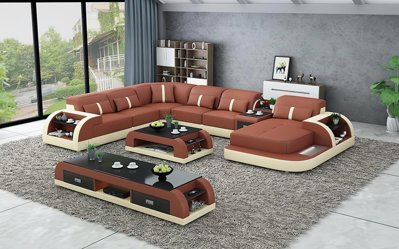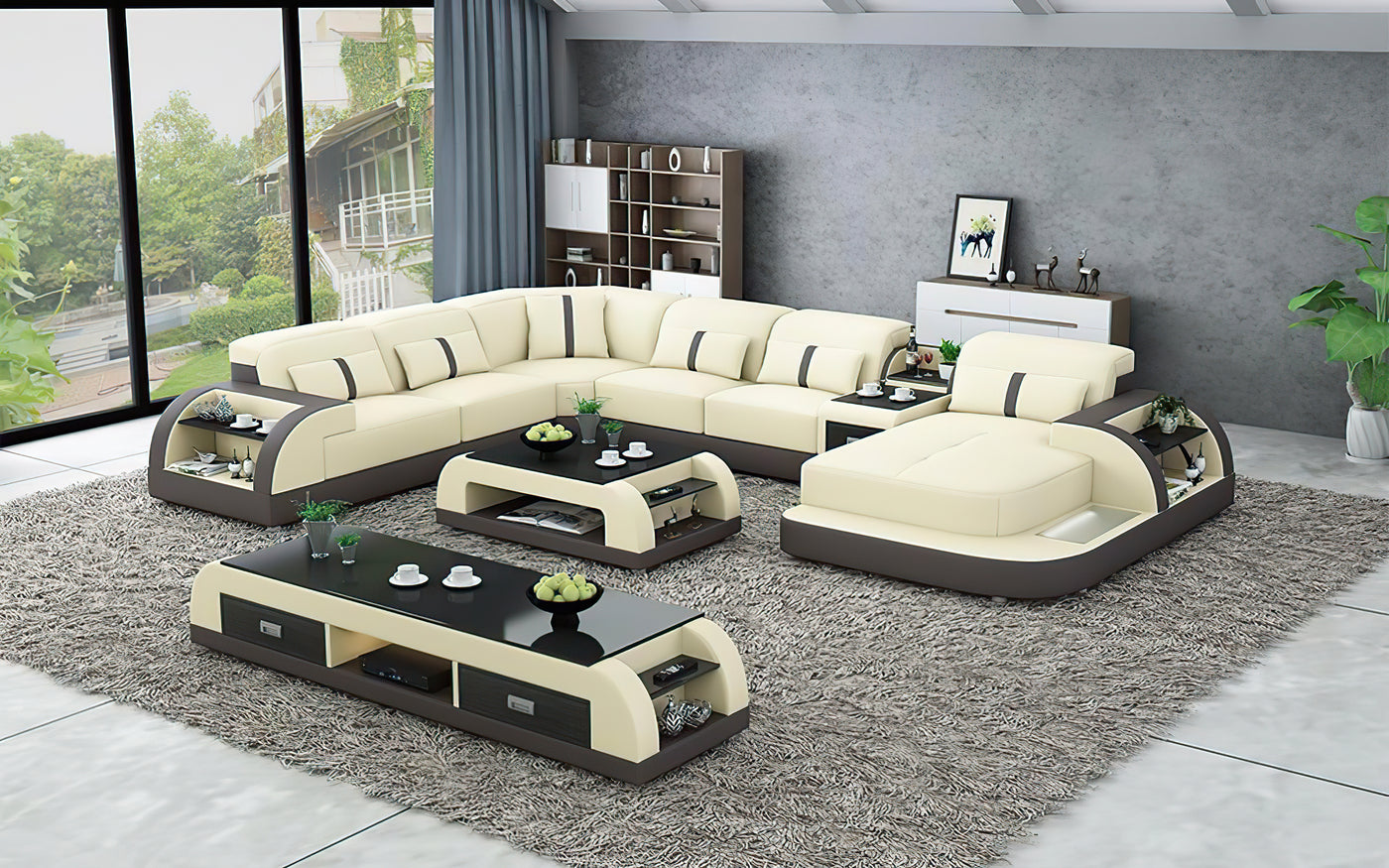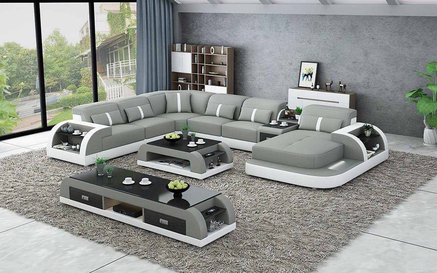Upgrade your living space with our customizable modern sectional sofas. With a variety of styles, colors, and sizes to choose from, you can create a sofa that's uniquely yours. Add-on features such as LED lighting, charging ports, cup holders, and a bed function offer even more customization options to create the perfect seating experience. Whether you're looking for a statement piece or a cozy nook, our custom modern sectionals offer flexibility and style to fit your needs. Don't settle for a traditional, one-size-fits-all sofa. Browse our collection today and start designing the sectional of your dreams!