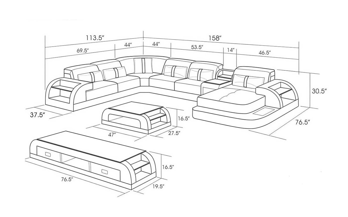 Modern sectionals feature built-in Bluetooth speakers, USB ports, cup holders, and a bed function, making them the perfect blend of style and convenience. You can stream audio wirelessly from your mobile device with the built-in Bluetooth speaker, and stay connected with the conveniently located USB ports. The cup holders allow you to keep your favorite beverage within reach, and the bed function allows you to easily transform your sectional into a comfortable sleeping area. With a variety of customizable options, you can create a sectional that perfectly fits your needs and personal style. Upgrade your home decor with the modern comfort and convenience of our sectional collection.