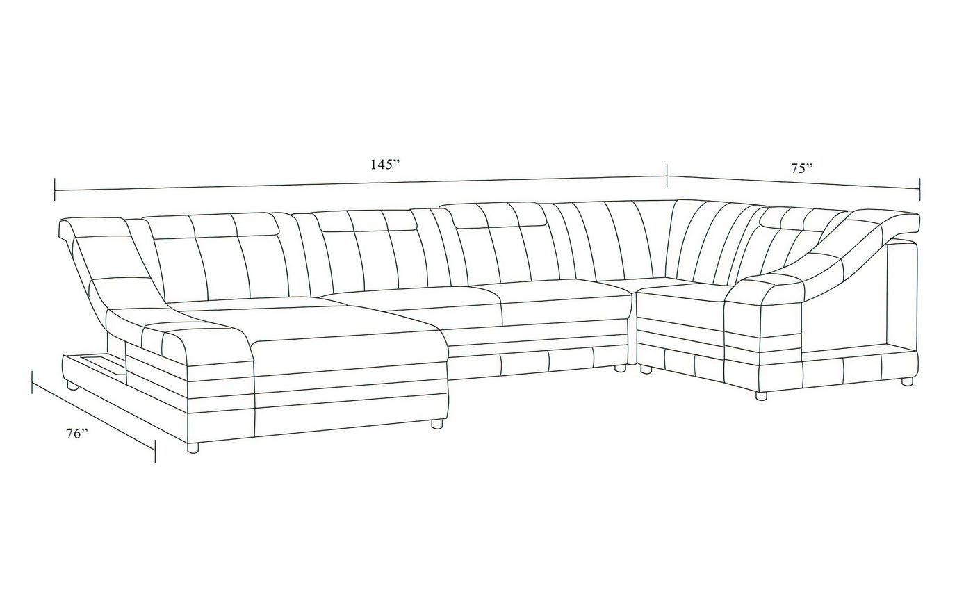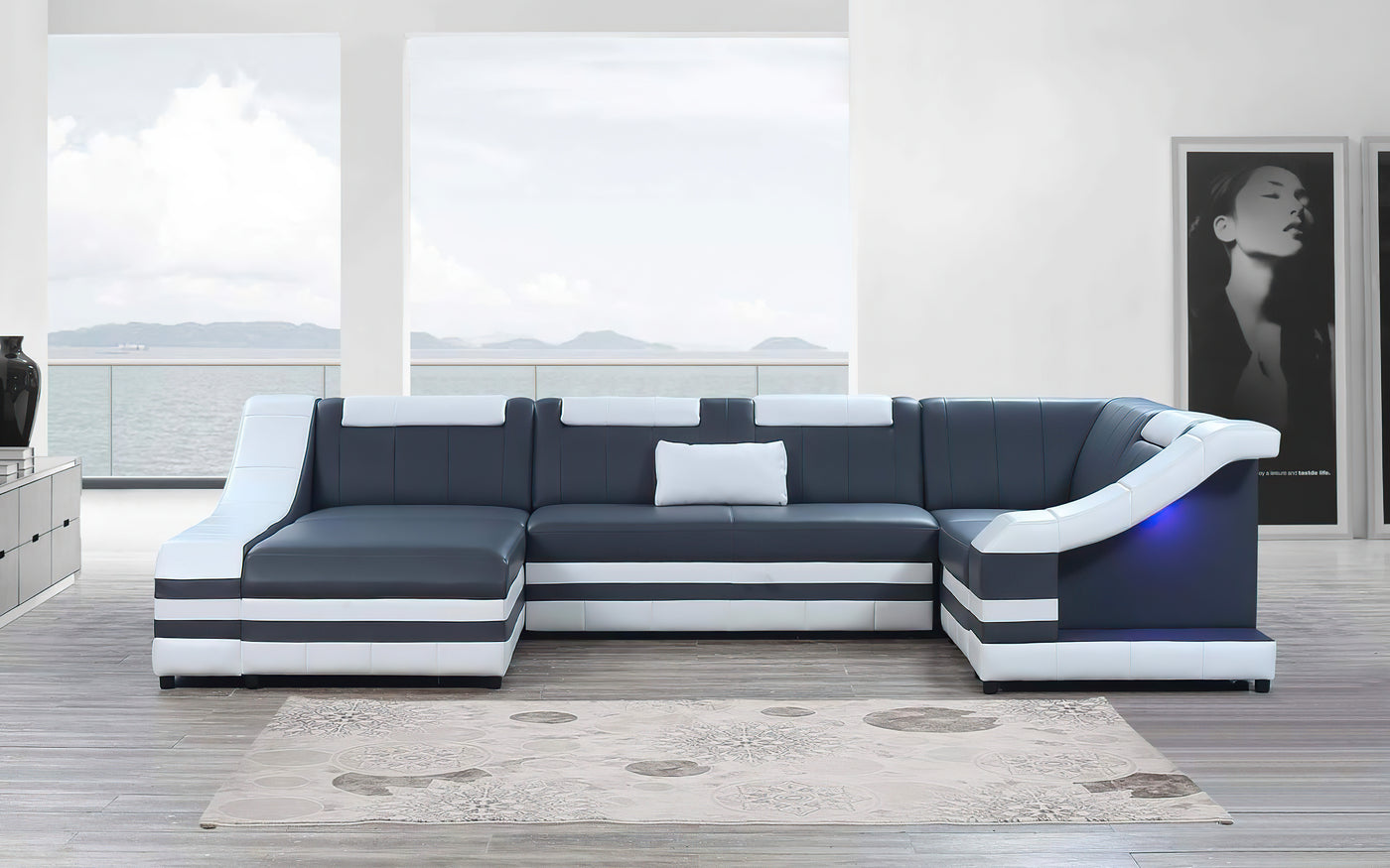 The Comet Leather Sectional with LED Light is available in two-toned or contrasting colors in Italian leather and bonded leather. Choose your preferred color leather from a selection of 10 distinct colors. The sleek, inviting design of this couch quickly catches the eye of visitors. Crafted custom to fulfill your desired aesthetic. The spacious chaise is perfect to lay down and rest after a busy day. Choose your configuration left hand facing or right-hand facing chaise to customize to your desired design. It features two storage spaces perfect for books or decorative items. The side of this leather couch are illuminated by a LED light. It can be optionally upgraded to multi-color lights that can be controlled by a wireless remote. This sleek, modern sectional is a must have for every contemporary home. To complete the look of your living space we recommend adding the armless chair and coffee table. Cup holders and USB ports are recommended for larger families to optimize maximum enjoyment. An additional bed function makes a great movie night with the family or space for unexpected guests. With the generous size of this sectional, family and friends will gladly socialize in comfort.