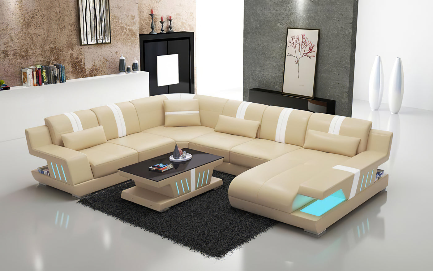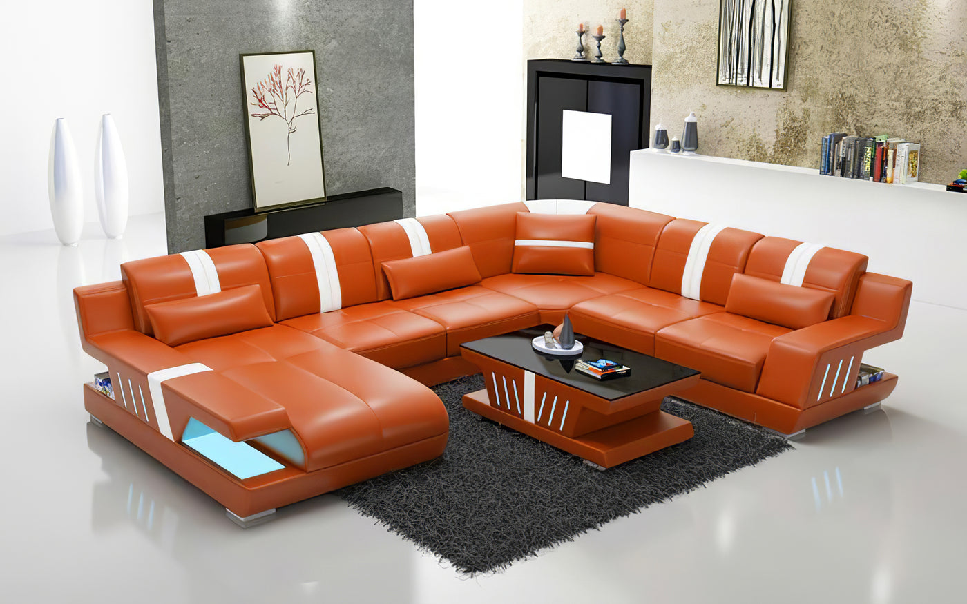 Yuli Modern U Shape Leather Sectional