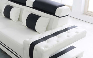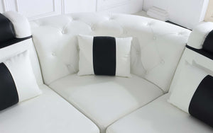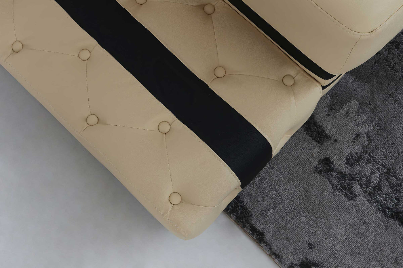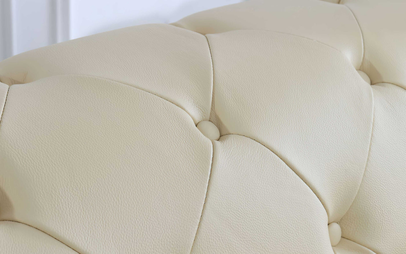 This smart sofa is absolutely beautiful, so elegant and sophisticated. It makes your space look very classy very well-made love the nice large size and to top it off the matching coffee table sets it off very nicely!!