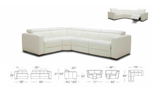 The Mirage Reclining Sectional Sofa With Adjustable Headrest is made of top grain Italian leather with a modern style. The feet are made of solid wood so the sectional is durable and stable. It has five removable headrests, and the backrest is very user-friendly. This sofa is ideal for large gatherings and movie nights. Perfect for a contemporary home and lovers of comfortable lounging.