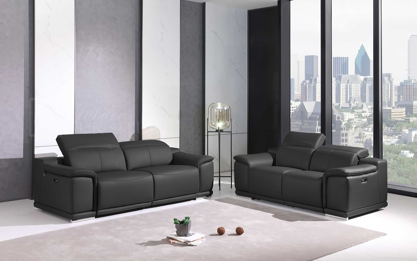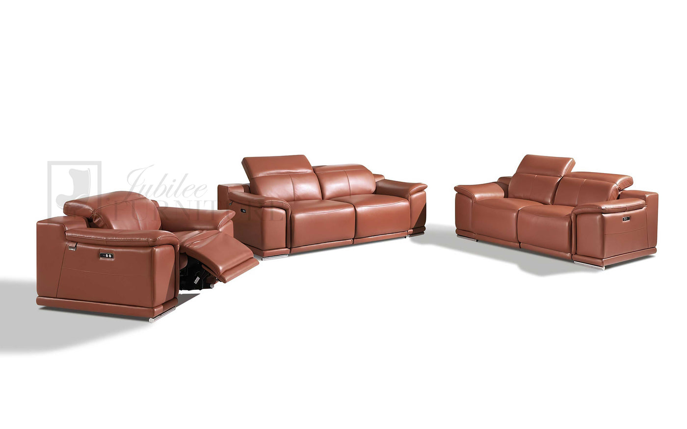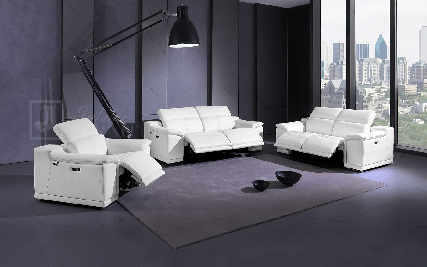 The Starcy Sofa Set with Power Reclining Seats is made of Italian leather with a modern style. All of the seating are power reline enabled, next to the recliner control is USB Port for convenience. The sofa set are made of quality durability, the adjustable headrests are made for maximum comfort. This sofa is ideal for large gatherings and movie nights. Perfect for a contemporary home and lovers of comfortable lounging.