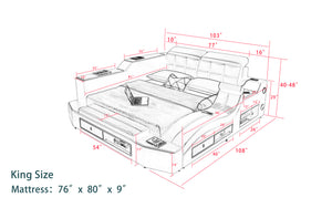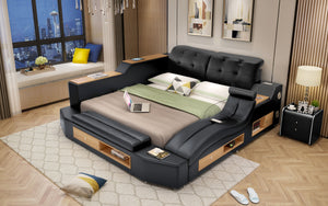 This innovative bed is designed to provide ample storage space without compromising on comfort or style. With storage options built into the headboard, ottoman, side shelf, and drawers, you can say goodbye to clutter and hello to a clean and organized sleeping space. The Smart Bed storage system is the perfect choice for anyone looking to maximize their bedroom's storage potential while maintaining a sleek and sophisticated look. Say goodbye to clutter and hello to a better night's sleep with the Smart Bed storage system.