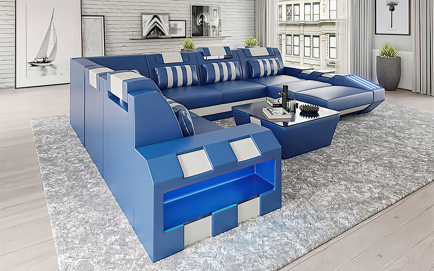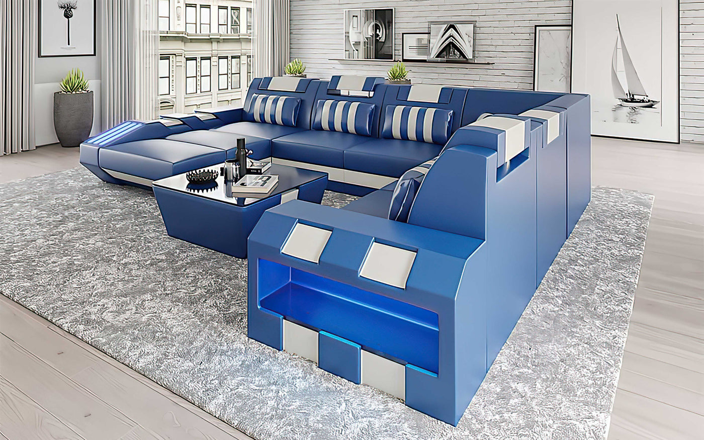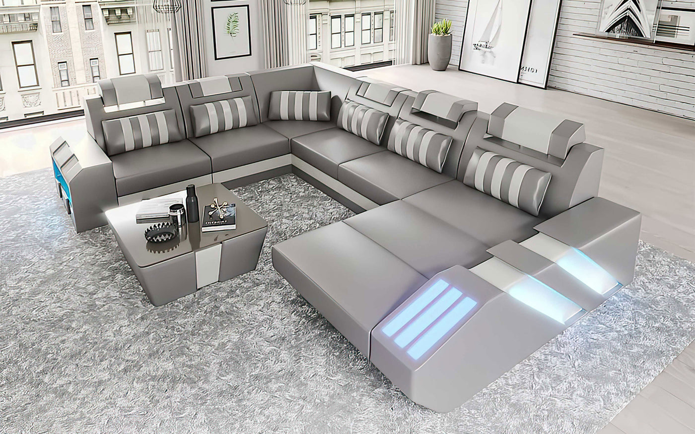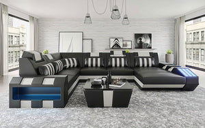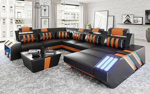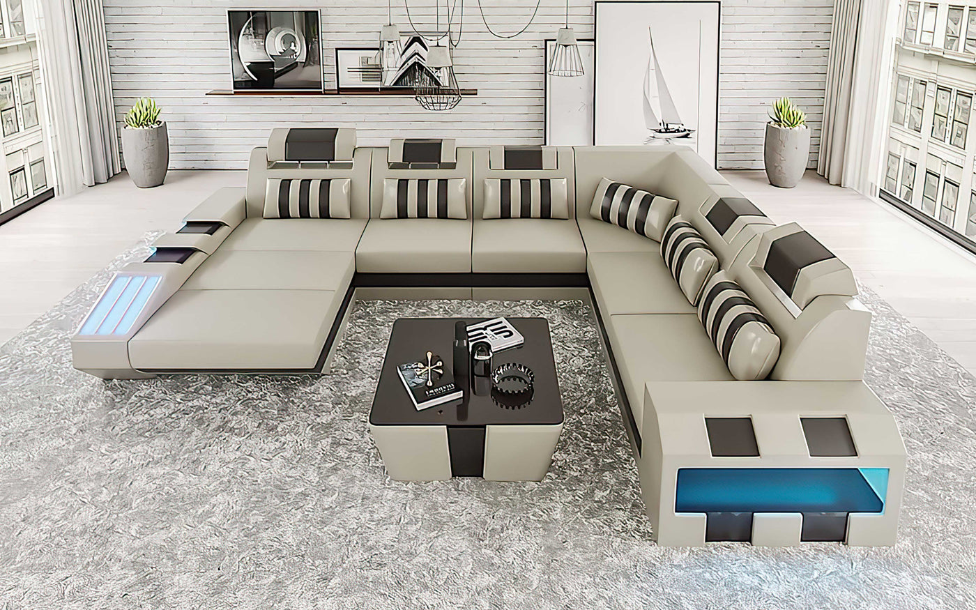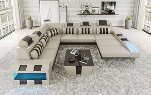 Cosmo XL U shape Modern Leather Sectional with Led Light