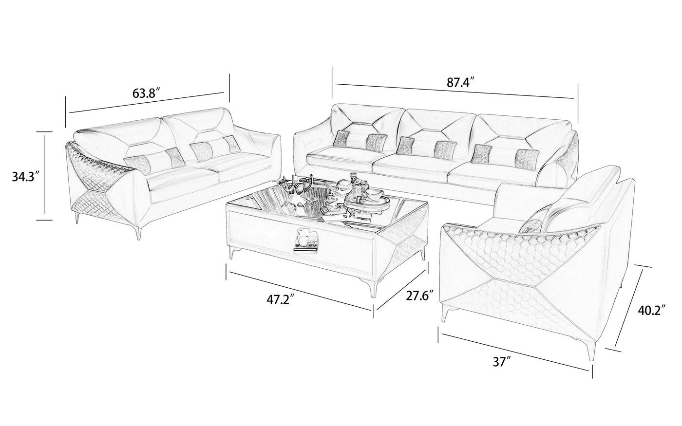This smart sofa is absolutely beautiful, so elegant and sophisticated. It makes your space look very classy very well-made love the nice large size and to top it off the matching coffee table sets it off very nicely!!