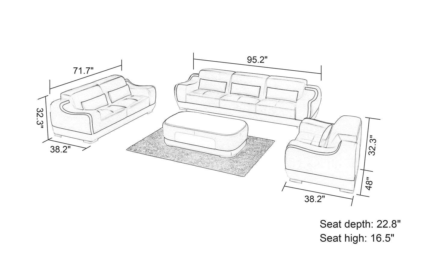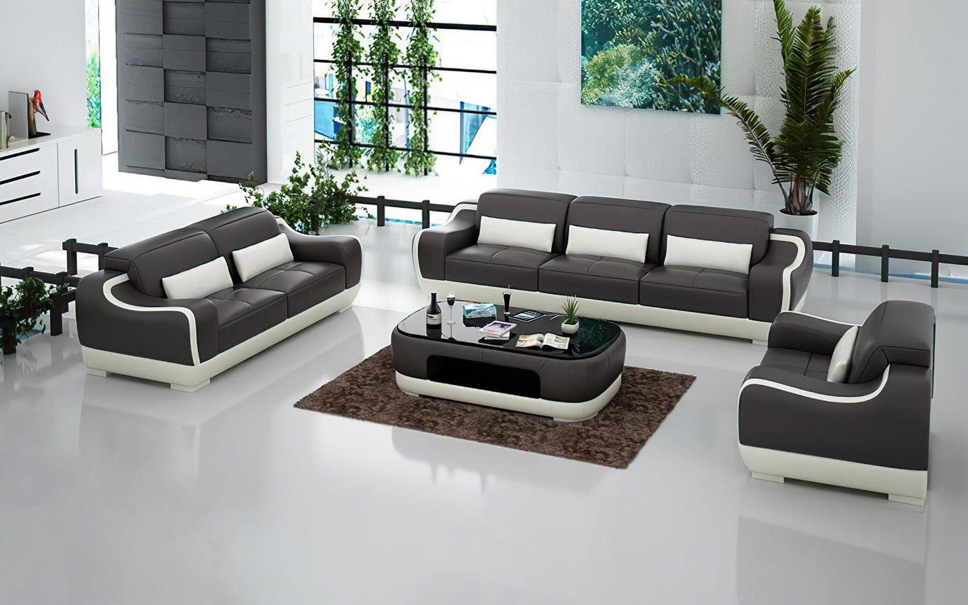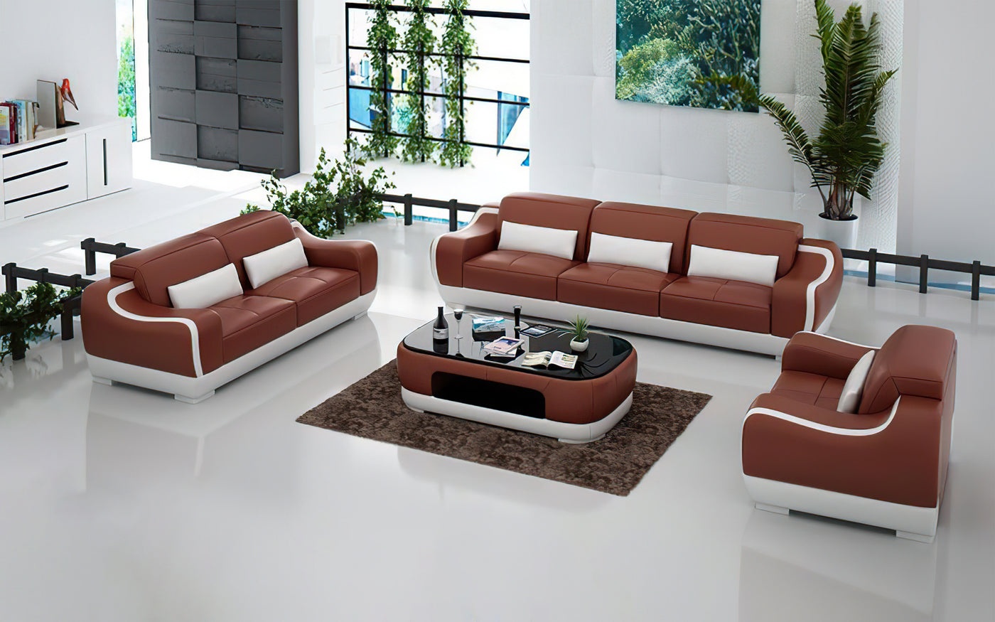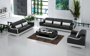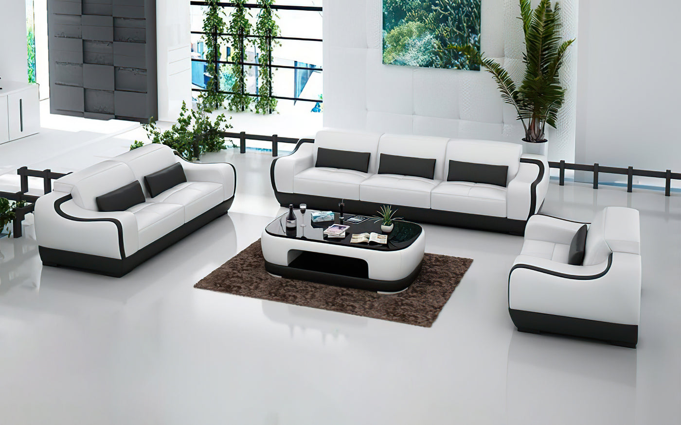 The Amir leather sofa set is a stunning and modern addition to any contemporary living space. Its sleek lines and futuristic design are sure to impress guests and elevate the overall aesthetic of your home. Made from high-quality leather, this sofa set is both stylish and durable, providing both comfort and longevity. The Elza leather sofa set comes in a variety of colors to complement any decor and features clean lines that exude a sense of sophistication. Whether you're entertaining guests or relaxing at home, the Elza leather sofa set is a perfect choice for those who want a modern and futuristic look in their living room.