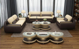 The Atlas Modern Leather Sofa Set is the perfect addition to any contemporary living space. Available in 10 different colors of genuine Italian or bonded leather, this set boasts plush arm and headrests for ultimate comfort. The refined and stylish design of this sofa set instantly makes it a conversation piece. Ideal for larger rooms or living spaces, the Atlas Sofa Set is a perfect fit. Complete the look of your living space by adding the matching coffee table. With its generous size, this sofa set is perfect for entertaining guests in comfort and style.