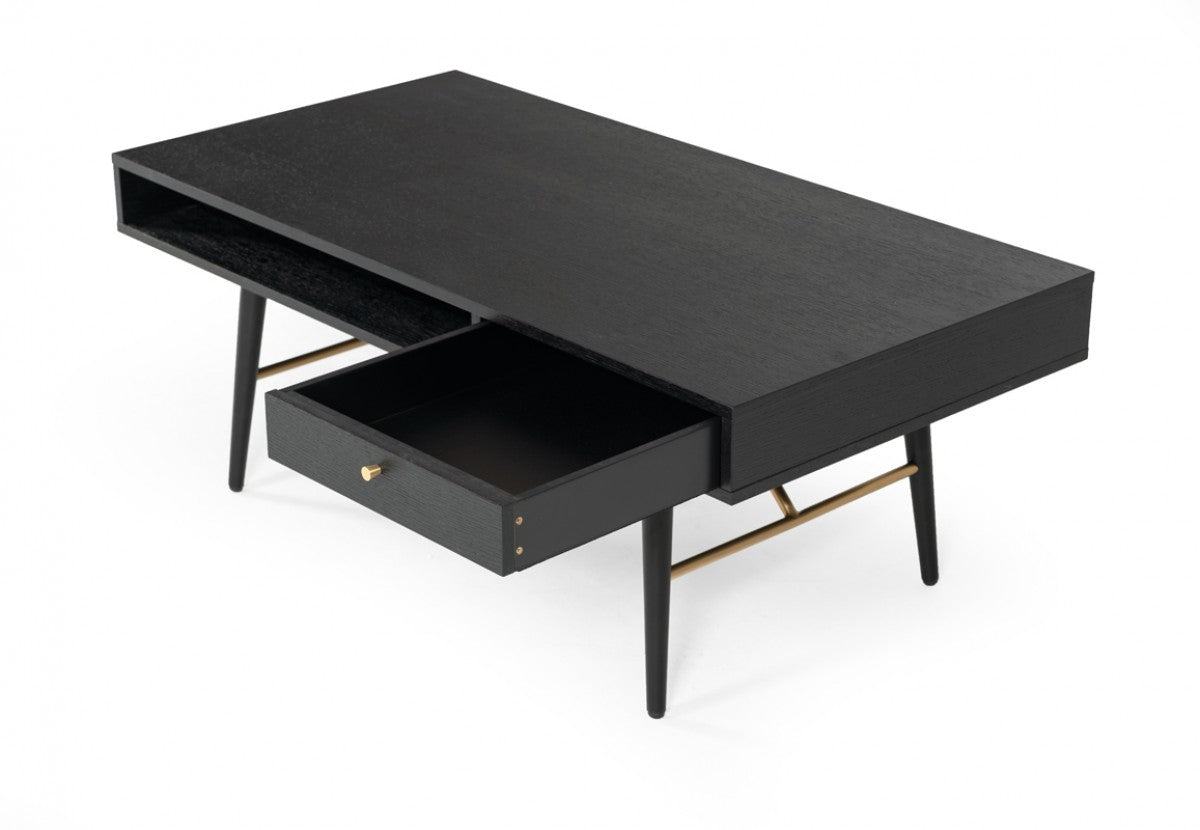 This coffee table is a minimalist dream. Perfect to accent your living space and hold your magazines, remotes, and of course coffee. The black color will compliment any sectional or couch you have. Since this coffee table is neutral, it will pair well with existing furniture in your home.