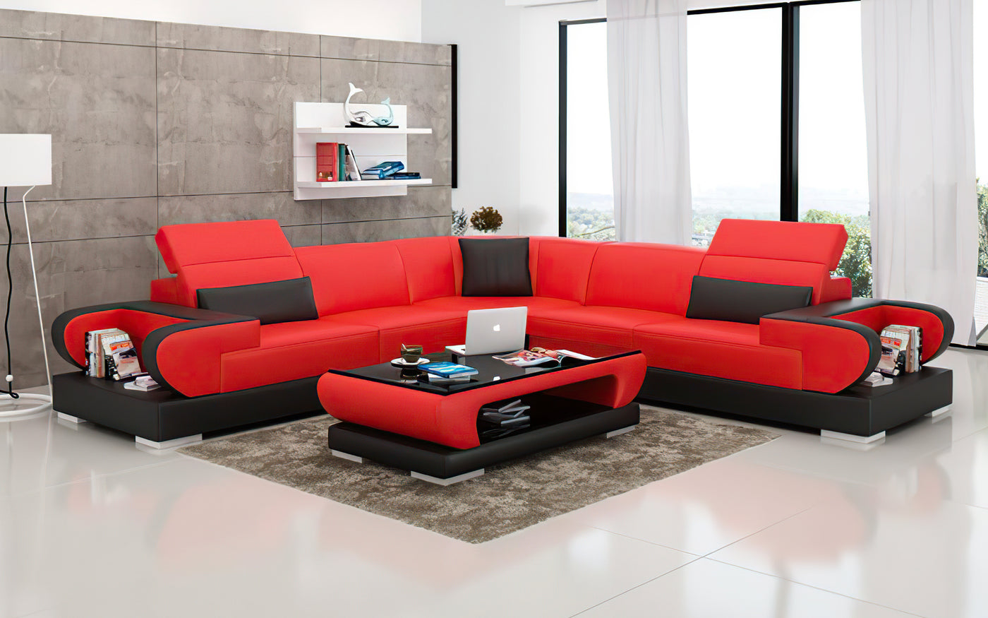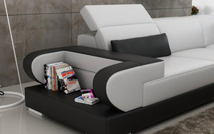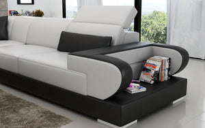 The Ezrael Modern Leather Sectional is handmade with genuine Italian or bonded leather. Choose your preferred color leather from a selection of 10 distinct colors. This leather sectional features two built in storage spaces big enough to display books or decorative items. Each top headrest is adjustable. This modern sectional is a stylish and chic addition to your living space. To complete the look of your living space we recommend adding the armless chair and coffee table. Cup holders and USB ports are recommended for larger families to optimize maximum enjoyment. An additional bed function makes a great movie night with the family or space for unexpected guests. With the generous size of this sectional, family and friends will gladly socialize in comfort.