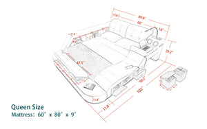 This innovative bed is designed to provide ample storage space without compromising on comfort or style. With storage options built into the headboard, ottoman, side shelf, and drawers, you can say goodbye to clutter and hello to a clean and organized sleeping space. The Smart Bed storage system is the perfect choice for anyone looking to maximize their bedroom's storage potential while maintaining a sleek and sophisticated look. Say goodbye to clutter and hello to a better night's sleep with the Smart Bed storage system.