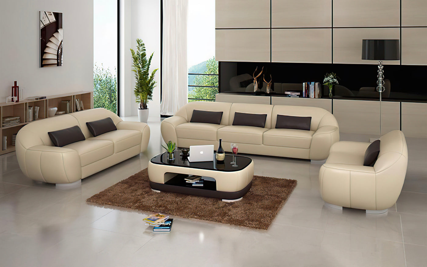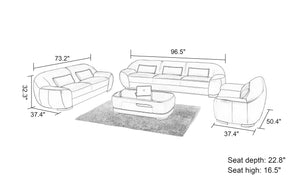This smart sofa is absolutely beautiful, so elegant and sophisticated. It makes your space look very classy very well-made love the nice large size and to top it off the matching coffee table sets it off very nicely!!